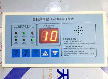 系統(tǒng)采用PLC自動化的控制手段,控制面板上LED顯示屏可正確顯示風(fēng)淋的運(yùn)行狀態(tài)、雙門的互鎖狀態(tài)、風(fēng)淋周期進(jìn)度和延時開門狀態(tài),并設(shè)有光電感應(yīng)器,單向通道風(fēng)淋室,從非潔凈區(qū)進(jìn)入,關(guān)門后紅外線感應(yīng)有人就吹淋,吹淋后入門鎖閉,只能從出門走出風(fēng)淋室。